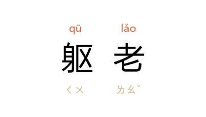 元·无名氏《争报恩·第一折》:「怎觑那乔躯老,屈脊低腰,款那步轻抬脚。」