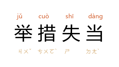 ※ "举措失当"的意思解释、举措失当是什么意思由国学字典提供。举措失当的造句