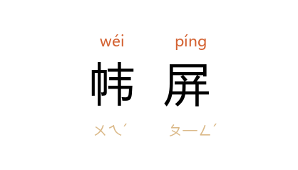 引晋·潘岳〈悼亡〉诗三首之一:「帏屏无髣髴,翰墨有余迹。」唐·白居易〈昭君怨〉诗:「只得当年备宫掖,何曾专夜奉帏屏。」