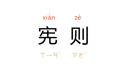 引《国语·晋语八》:「昔栾武子无一卒之田,其宫不备其宗器,宣其德行,顺其宪则,使越于诸侯。」《旧唐书·卷五〇·刑法志》:「永垂宪则,贻范后昆。」