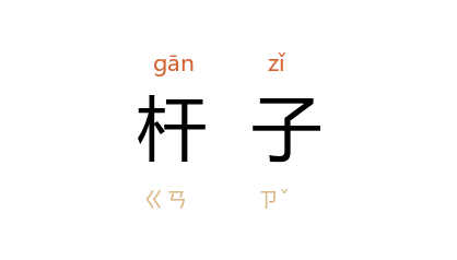 ⒈ 棍棒。 有一定用途的比较长的棒状物,多直立在地上,上端较细。