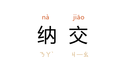 引《朱子语类》卷二八:“其行辈与吾相若者,则纳交取友,亲炙渐磨。”《宋史·张忠恕传》:“始 魏了翁 尝勉 忠恕 以植立名节,无隤家声,及是嘆曰:‘ 忠献 有后矣!’ 真德秀 闻之,更纳交焉。”明 归有光 《乞醯》:“是一事之微,可以纳交也,可以为惠也,可以使人称我也。”