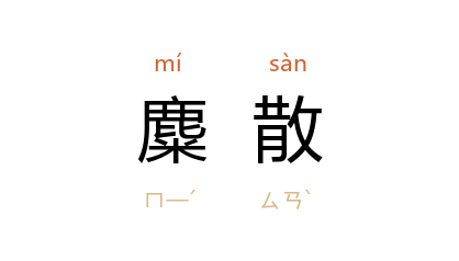 《周书·于翼传》:“数十年委积,一朝麋散。”