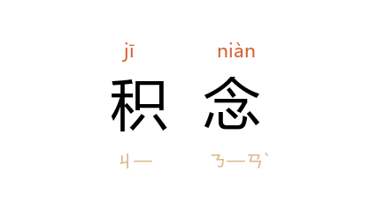 引汉 枚乘 《杂诗》:“夜光照玄阴,长叹恋所思。谁谓我无忧,积念发狂痴。”清 恽敬 《与来卿书》:“小女性虽孝谨,而负气好高,恐胸中积念深思有不能形之纸笔者,遂尔疏阔。”《隋书·房陵王勇传》:“﹝臣﹞每恐谗生於投杼,鴆毒遇於杯勺,是用勤忧积念,惧履危亡。”