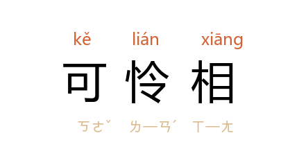 引朱自清 《论书生的酸气》:“‘寒’和‘瘦’映衬起来,够可怜相的。”茅盾 《子夜》十四:“他故意不看这可怜相的老头儿。”周立波 《暴风骤雨》第二部六:“看见 杜善人 装做可怜相。”