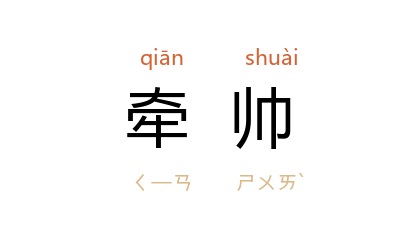 引《左传·襄公十年》:“女既勤君而兴诸侯,牵帅老夫,以至於此,既无武守,而又欲易余罪,曰:‘是实班师,不然克矣。’”蔡元培 《在北京通俗教育研究会演说词》:“几何不牵帅读者而使之沉溺于黑暗社会耶!”