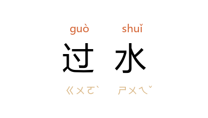 引唐 杜甫 《即事》诗:“黄鶯过水翻迴去,燕子衔泥湿不妨。”宋 翁卷 《初晴道中》诗:“依山知有寺,过水恨无船。”