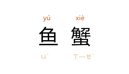 引《北史·魏咸阳王坦传》:“﹝ 坦 ﹞性好畋渔,无日不出。秋冬猎雉兔,春夏捕鱼蟹,鹰犬常数百头。”唐 韩愈 《南海神庙碑》:“人厌鱼蟹,五穀胥熟。”唐 陆游 《戒杀》诗:“既畜鸡鶩羣,復利鱼蟹贱。”