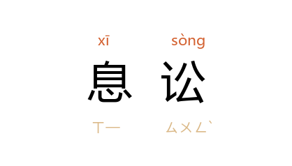 引南朝梁·任昉〈王文宪集序〉:「公不谋声训,而楚夏移情,故能使解剑拜仇,归田息讼。」《初刻拍案惊奇·卷二》:「姚乙心理也只要家里息讼要紧,细思月娥说话尽可行得。」