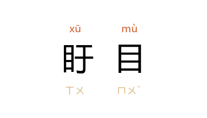 引汉 班固 《白虎通·考黜》:“武王 望羊,是谓摄扬,盱目陈兵,天下富昌。”陈立 疏证:“盱,张目也。谓张目陈兵,《孟子》所云 武王 一怒而安天下之民也。”《剪灯新话·富贵发迹司志》:“诸人言叙既毕,发迹司判官忽扬眉盱目,咄嗟长叹。”清 谭嗣同 《<仲叔四书义>自叙》:“民迫穷困,且向乱,羣族盱目而环伺。”