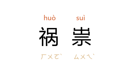 引《墨子·天志上》:“我欲福禄,而恶祸祟。”汉 王充 《论衡·辨祟》:“世俗信祸祟,以为人之疾病死亡,及更患被罪、戮辱欢笑,皆有所犯。”唐 韩愈 《与孟尚书书》:“假如释氏能与人为祸祟,非守道君子之所惧也,况万万无此理。”鲁迅 《呐喊·狂人日记》:“我晓得他们的方法,直捷杀了,是不肯的,而且也不敢,怕有祸祟。”