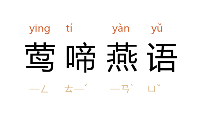 ⒈ 燕子呢喃,黄莺鸣声不绝于耳。唐·孟郊〈伤春〉诗:「千里无人旋风起,莺啼燕语荒城里。」也作「燕语莺啼」、「燕语莺呼」。