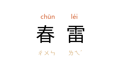 ⒈ 春天的雷。通常第一声春雷代表春天到来。
