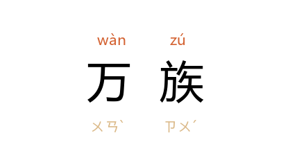 引晋 陶潜 《咏贫士》:“万族各有託,孤云独无依。”唐 白居易 《夏旱》诗:“嗸嗸万族中,唯农最辛苦。”明 高攀龙 《水居》诗:“万族有乐,吾心何忧。”章炳麟 《訄书·原变》:“且万族之相轧,非直寒暑燥溼之比者也。”