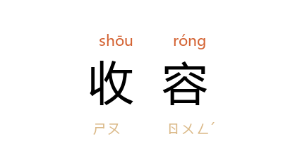 ⒈ 收留容纳。「欧洲各国纷纷伸出援援手,收容因逃避战火而远走他乡的叙利亚难民。」