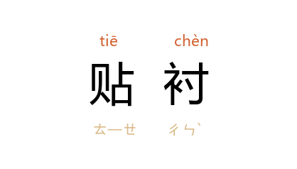 引宋 文天祥 《至扬州》诗之十三序:“土围粪秽不可避,但扫净数人地,以所携衣服贴衬地面,睡起復坐,坐起復睡,日长难过,情绪奄奄,哀哉!”《石点头·瞿凤奴情愆死盖》:“且又贴衬些沉速生香,熏得满身扑鼻。”