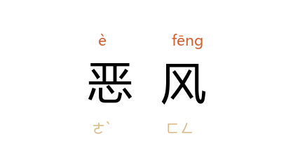 引唐 杜甫 《渼陂行》:“鼉作鲸吞不復知,恶风白浪何嗟及!”陈毅 《野营》诗:“恶风暴雨住无家,日日野营转战车。”