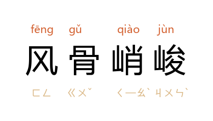 ⒈ 峭峻,又高又陡。风骨峭峻形容人的品格刚正有骨气,亦用以比喻诗文画书的风格雄健有力。