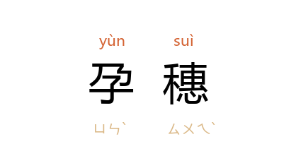 ⒈ 稻麦类作物在叶鞘内形成而尚未抽出来的穗,即称为「孕穗」。