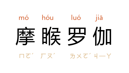 引《法华经·序品》:“摩睺罗伽,人,非人,及诸小王,转轮圣王等,是诸大众得未曾有,欢喜合掌,一心观佛。”唐 慧琳 《一切经音义》卷二五:“摩睺罗伽,新云莫呼勒伽。此云胸行神,即大蟒虵也。”