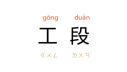 ⒈ 建筑、交通、水利等工程事务或工厂,因工程进行的实际需要划分成不同的小单位,以利工作的进行。这种施工生产的小单位组织,就称为「工段」。