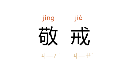 引《周礼·夏官·职方氏》:“攷乃职事,无敢不敬戒。”《荀子·大略》:“敬戒无怠。”清 姚鼐 《旌表贞节大姊六十寿序》:“吾故引《诗》美刺之义为寿,岂独以荣吾姊哉!又使幼小者将闻吾言而知敬戒。”