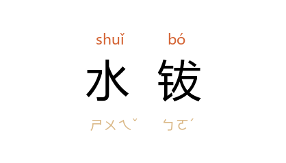 ⒈ 铜制的打击乐器。形似铙钹而叶片较薄,中央突出部分较小,发音松散。常用於戏曲、曲艺及民间吹打乐中。又叫水钗、荷叶。