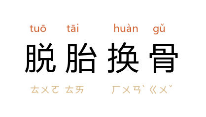 亦作“脱骨换胎”。 郭沫若 《南冠草》第二幕:“夏完淳 :哪里,我的《大哀赋》完全摹仿《哀江南》的。 盛蕴贞 :你却是脱骨换胎。”