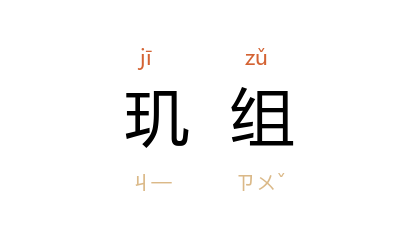 ⒈ 珠串。《书·禹贡》:“厥篚玄纁,玑组。”孔传:“玑,珠类,生于水;组,绶类。”一说文彩似玑的丝带。孙星衍疏:“玑组玄纁,同为篚实,当非珠玑与组二物,证以徐州蠙珠,雍州琅玕,皆不入篚,疑组文似玑,故曰玑组,犹织贝之为锦文也。”