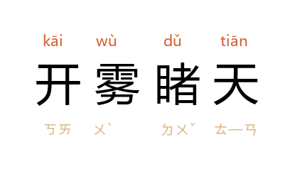 引语本 汉 徐干 《中论·审大臣》:“文王 之识也,灼然若披云而见日,霍然若开雾而观天。”北周 宇文逌 《<庾信集>序》:“夜不离阁,无愧于 黄香 ;开雾睹天,有同于 乐广。”