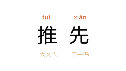 引《后汉书·逸民传·矫慎》:“与 马融、苏章 乡里并时, 融 以才博显名, 章 以廉直称,然皆推先於 慎。”《晋书·阮咸传》:“太原 郭奕 高爽有识量,知名於时,少所推先,见 咸 心醉,不觉嘆焉。”唐 韦应物 《酬豆卢仓曹题库壁见示》诗:“莫嗟年鬢改,郎署定推先。”