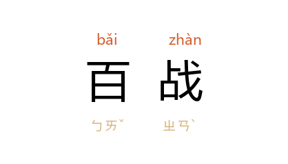 引《吴子·料敌》:“三军匈匈,欲前不能,欲去不敢,以半击倍,百战不怠。”《晋书·索綝传》:“大小百战, 綝 手擒贼帅 李羌。”唐 罗虬 《比红儿》诗之六九:“几抛云髻恨金墉,泪洗花颜百战中。”宋 王安石 《乌江亭》诗:“百战疲劳壮士哀,中原一败势难迴。”清 昭槤 《啸亭续录·超勇亲王》:“王阵擒贼首二,皆百战渠魁,贼帅 小策零 堕骑,裸身跨白驼遁。”