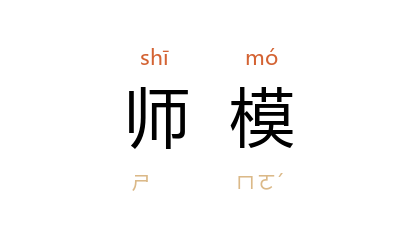 引《三国志·魏志·邴原传》“太祖 征 吴,原 从行,卒” 裴松之 注引《邴原别传》:“郑君 学览古今, 博 文彊识,鉤深致远,诚学者之师模也。”宋 胡仔 《苕溪渔隐丛话后集·迂叟》:“司马文正 尝铭 范蜀公 所惠布衾云:‘ 颜 乐一簞,万世师模; 紂 居琼室,死为独夫。’”明 李东阳 《圣驾视学有述》诗:“拜瞻共识师模重,坐讲方知圣道尊。”