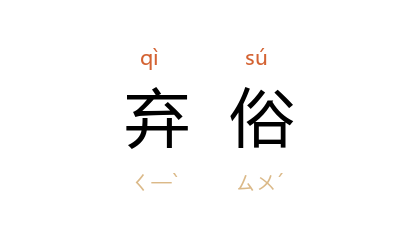 引晋 夏侯湛 《东方朔画赞》:“先生嘘吸冲和,吐故纳新,蝉蜕龙变,弃俗登仙。”《京本通俗小说·菩萨蛮》:“这个和尚是 温州 人氏,姓 陈 名 义,三举不第,因此弃俗出家,在 灵隐寺 做侍者。”
