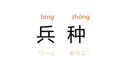 ⒈  军种内部的分类。如陆军内的炮兵、步兵、野战部队等。