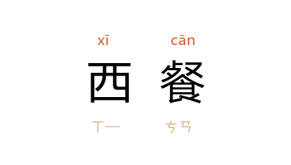 英语Western-style food, CL:份[fen4],頓|顿[dun4]