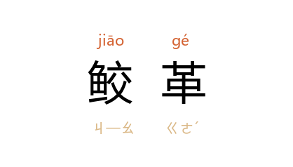 引《荀子·议兵》:“楚 人鮫革犀兕以为甲,鞈如金石。”杨倞 注:“以鮫鱼皮及犀兕为甲,坚如金石之不可入。”《新唐书·地理志五》:“﹝ 江南道 ﹞厥贡:金、银、纱、綾、蕉、葛、绵、綀、鮫革、藤纸、丹沙。”