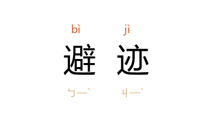 引《再生缘》第三七回:“母亲与郡主两年避跡在于 万缘尼菴 内。”《玉娇梨》第八回:“晚生寒舍虽在郡中,却有一个小园在前面 白石村 中,晚生因在此避迹读书,到了城中住的时少,又癖性不喜妄交朋友,所以贱名不能上达。”