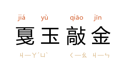 引宋 罗烨 《醉翁谈录·小说引子》:“试开戞玉敲金口,説与东西南北人。”清 蒲松龄 《聊斋志异·八大王》:“雅謔则飞花粲齿,高吟则戛玉敲金。”