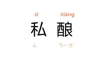 ⒈ 私自酿酒。 《北史·列女传·胡长命妻张氏》:“太安 中,京师禁酒。 张 以姑老且患,私为醖之,为有司所纠。