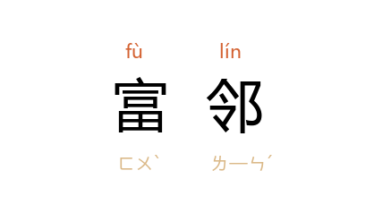 ⒈ 富有的邻人。语本《易·小畜》:“有孚挛如,富以其邻。”