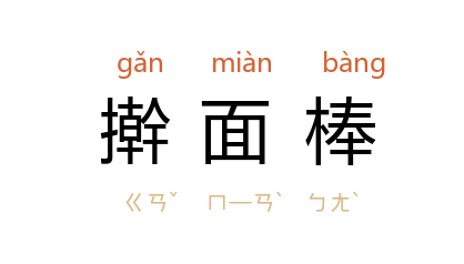 引艾芜 《人生哲学的一课》一:“等老板捏着擀面棒气呼呼地打来时,他已三口吃完了一个。”郭澄清 《大刀记》开篇十六:“永生 见大叔搬过面板,又拿擀面杖,忙说:‘大叔,别麻烦啦,这糟扰得你就够呛啦!’”