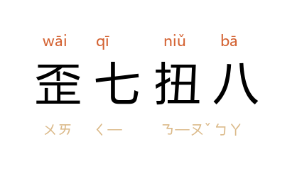 例如:「他的字歪七扭八的,一点也不工整秀丽。」