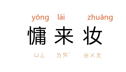 引《赵飞燕外传》:“合德 新沐,膏九曲沉水香,为卷髮,号新髻;为薄眉,号远山黛;施小朱,号慵来粧。”亦省称“慵来”。 宋 计有功 《唐诗纪事·罗虬》:“轻梳小髻号慵来,巧中君心不用媒。”