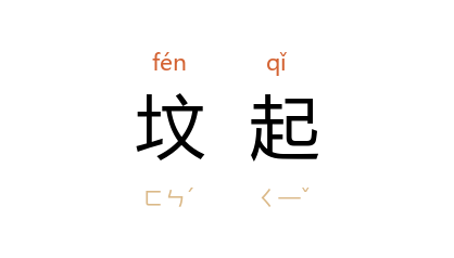 引《书·禹贡》“厥土黑坟” 孔 传:“色黑而坟起。”宋 苏辙 《息壤》诗:“江上寒沙薄如席,一夕坟起成高邱。”清 赵翼 《疽发于背医来以刀割治作诗志痛》:“初谓癣疥不足忧,旋復坟起如赘疣。”叶圣陶 《欢迎》:“搬运行李货物的工人,露出他们筋肉坟起的手腕,推着小铁轮的车子,象机器一般地向月台走来。”