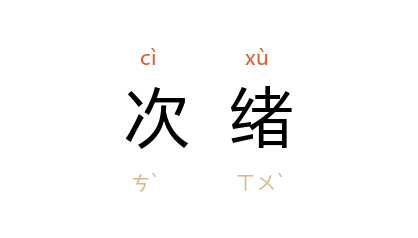 引晋 干宝 《搜神记》卷十五:“问 汉 时宫中事,説之了了,皆有次绪。”《北史·夏侯夬传》:“﹝ 夬 ﹞又发阴私窃盗,咸有次绪。”宋 欧阳修 《与大寺丞发书》之五:“他事若渐有次绪,亦言来。”