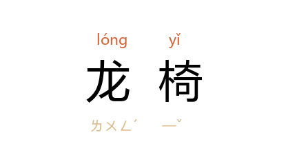 引《说唐》第四二回:“高祖 一闻 元霸 身亡,大喊‘皇儿好苦!’晕倒在龙椅上。”《中国民间故事集·太平天囯的故事》:“这一天皇帝上朝,一听见 广西 有这么多人反了,大吃一惊,差点从龙椅上跌下来。”