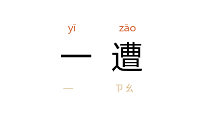 ⒈ 一旦遭逢。一次;一趟。一周遭。四周。