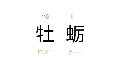 ⒈ 亦称“牡蛤”。软体动物,肉鲜美,壳可入药。又名蠔。