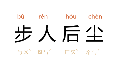 ⒈ 踩著别人的脚印前进。比喻追随或效仿。也作「步后尘」。